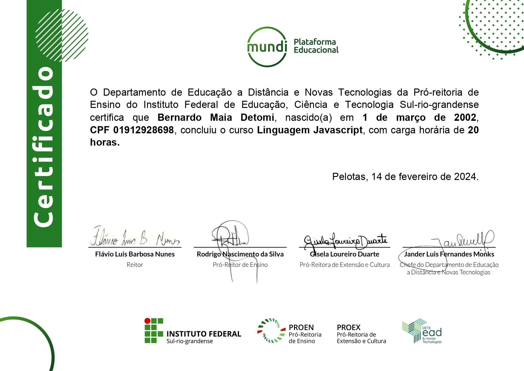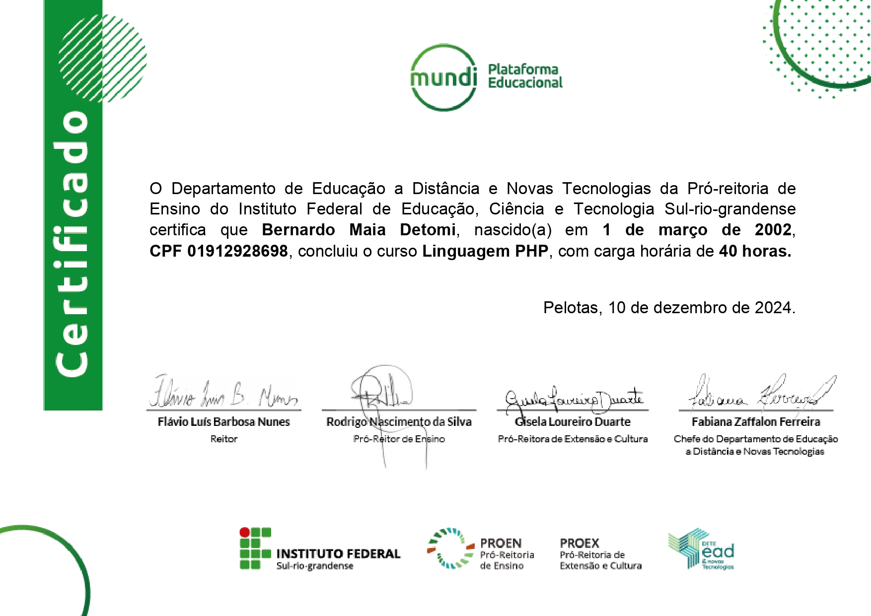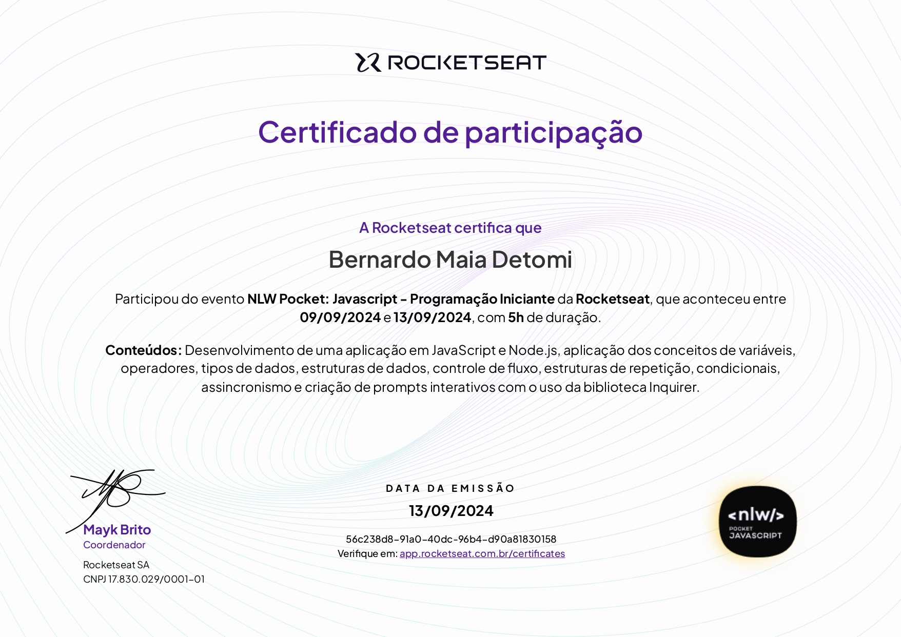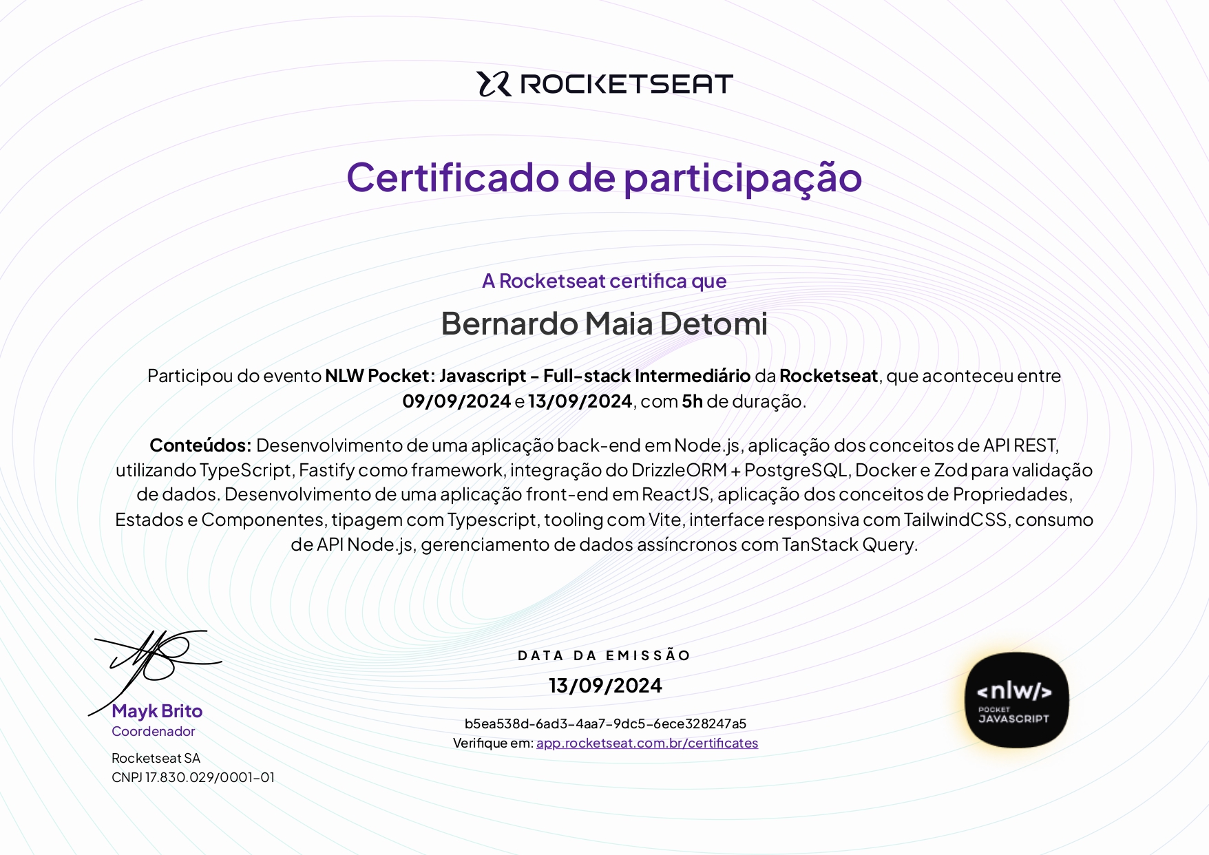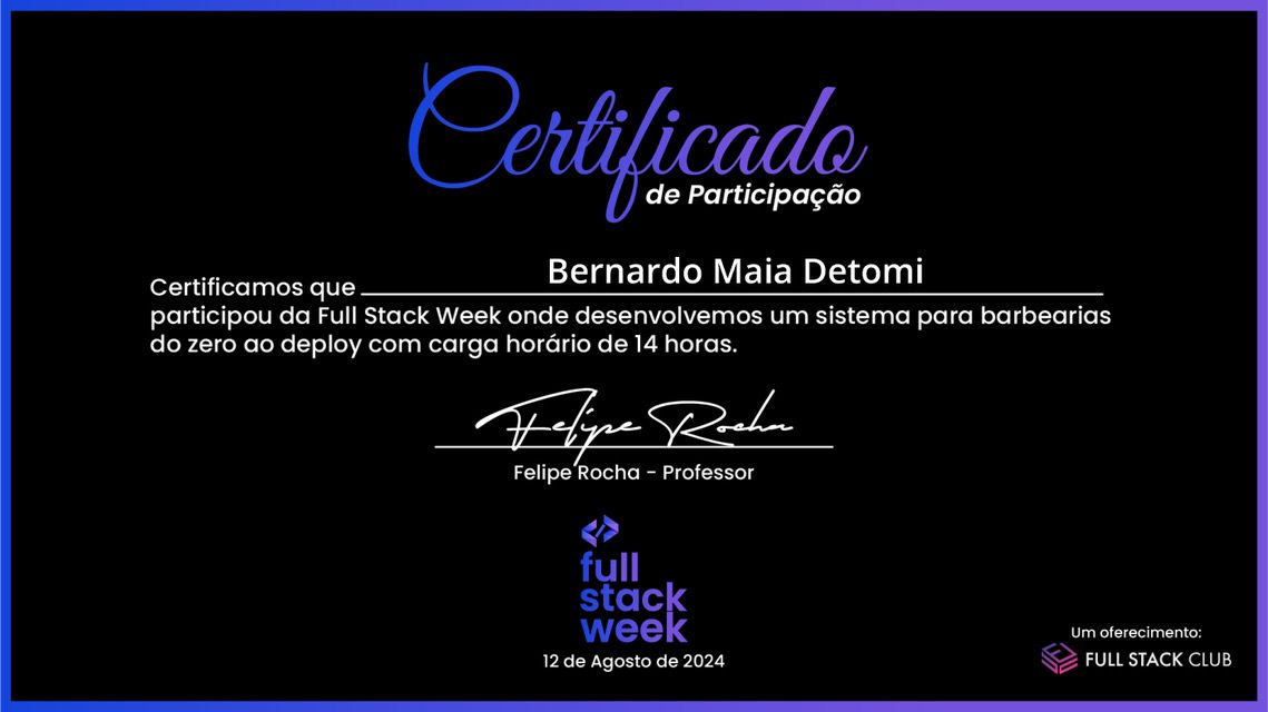 Olá! Sou Bernardo Maia Detomi, desenvolvedor apaixonado por tecnologia e inovação. Estou cursando Ciência da Computação na UFSJ e venho construindo soluções digitais robustas e modernas.